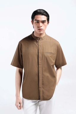 - Kemeja dengan kerah berdiri dengan detail ikalan kancing dan saku bibir dengan ukuran Relaxed fit yang terbuat dari material terasa lembut saat digunakan dan tidak panas