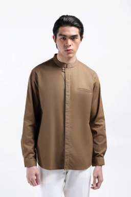 - Kemeja dengan kerah berdiri dengan detail ikalan kancing dan saku bibir dengan ukuran Relaxed fit yang terbuat dari material terasa lembut saat digunakan dan tidak panas