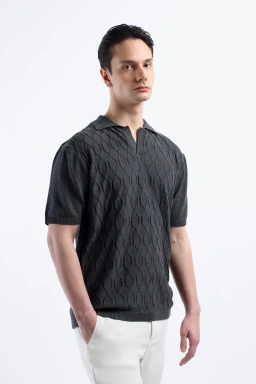 - Polo Rajut dengan motif bertekstur yang menambah penampilan kasual untuk kegiatan sehari-hari