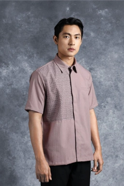 Penggunaan kancing tersembunyi menjaga tampilan tetap clean dan minimalis, memberikan kesan modern pada kerah kemeja klasiknya. Kemeja ini menjadi pilihan tepat untuk berbagai acara istimewa maupun momen formal yang membutuhkan perpaduan harmonis antara sentuhan etnik dan high-fashion.