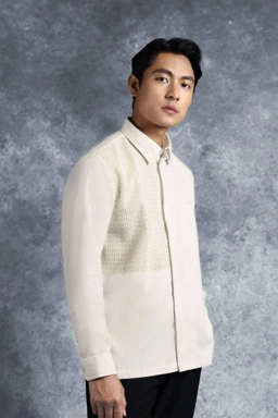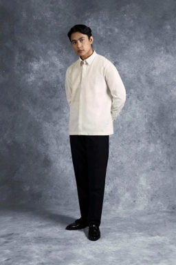 Penggunaan kancing tersembunyi menjaga tampilan tetap bersih dan minimalis, memberikan kesan modern pada kerah kemeja klasiknya. Kemeja ini menjadi pilihan tepat untuk berbagai acara istimewa maupun momen formal yang membutuhkan perpaduan harmonis antara sentuhan etnik dan high-fashion.