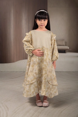 Dilengkapi lining halus di bagian dalam, dress ini tetap nyaman di kulit anak meski menggunakan bahan semi-transparan.