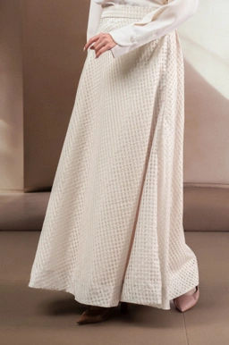 Skirt organza ini menghadirkan tampilan yang anggun dengan tekstur organza yang ringan dan memantulkan cahaya secara lembut.