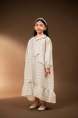 Dress anak dengan kombinasi bahan brokat organza premium dan bahan polos bertekstur yang memberikan kesan classy dan manis.