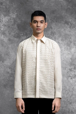 Kemeja ini hadir dengan potongan Regular Formal Fit . Menghadirkan perpaduan unik panel Lace Embroidery berdesain shape oval yang tersusun presisi pada bagian badan depan. Penggunaan Hidden Button menciptakan tampilan depan yang seamless dan minimalis, memberikan ruang bagi detail brukat untuk tampil sebagai centerpiece yang mewah. Dengan lengan panjang bermanset rapi, kemeja ini dirancang khusus bagi yang ingin tampil eksklusif dan berbeda dalam balutan craftsmanship yang modern.