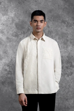 Kemeja ini dirancang dengan potongan Reguler Formal yang memberikan siluet rapi dan proposional. Kemeja ini memberikan sisi tegas melalui desain Asimetris yang dilapisi Brukat dengan sentuhan modern yang unik. Penggunaan Hidden Button memastikan tampilan depan menjadi clean dan minimalis, sementara detail patch pocket di dada kiri dan lengan panjang memperkuat karakter eksklusifnya. Kemeja ini sangat cocok untuk acara formal, perhelatan mewah, maupun momen spesial penting lainnya.