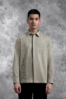 Kemeja ini dirancang dengan potongan Reguler Formal yang memberikan siluet rapi dan proposional. Kemeja ini memberikan sisi tegas melalui desain Asimetris yang dilapisi Brukat dengan sentuhan modern yang unik. Penggunaan Hidden Button memastikan tampilan depan menjadi clean dan minimalis, sementara detail patch pocket di dada kiri dan lengan panjang memperkuat karakter eksklusifnya. Kemeja ini sangat cocok untuk acara formal, perhelatan mewah, maupun momen spesial penting lainnya.