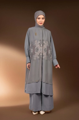 Kombinasi bahan Floral Sheer pada layer luar dan Saba Twill pada badan dalam