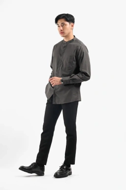 - Solid color fabric collarless shirt
