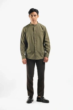 - Solid color fabric collarless shirt