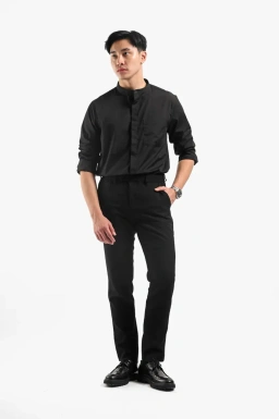 - Solid color fabric collarless shirt