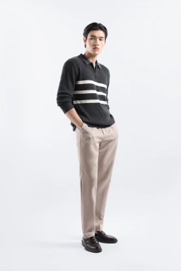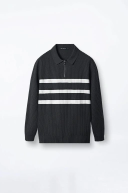 - Kemeja polo ini memiliki desain kerah klasik dan penutup half zipper di bagian depan.