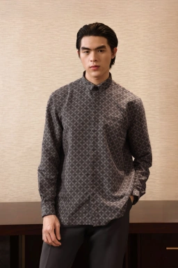 - Kemeja kerah sudut material dengan bertekstur berukuran New Relaxed Fit dengan motif Mosaic.