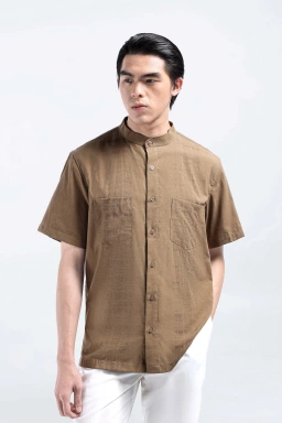 - Kemeja dengan kerah berdiri dengan detail dua saku tempel dan motif tekstur dengan ukuran Relaxed fit
