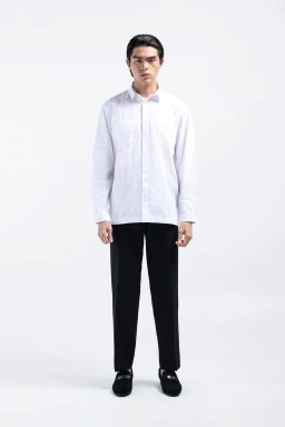 - Kemeja dengan detail saku tempel dan motif yang menambah penampilan kasual untuk kegiatan sehari-hari dan hari raya