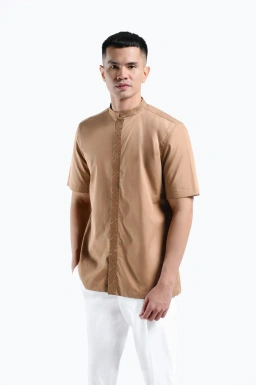 - Kemeja kerah tegak dengan detail bordir yang memberi kesan mewah saat digunakan