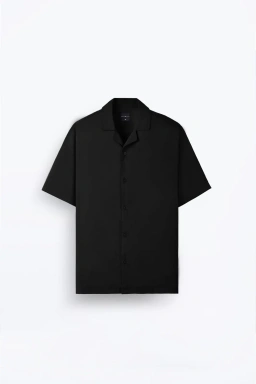 - Kemeja dengan kerah terbuka dengan ukuran relaxed fit