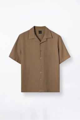 - Kemeja tanpa kerah, berukuran New Relaxed Fit material bertekstur