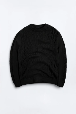 - Lengan panjang dengan aksen cable knit di sisi luar