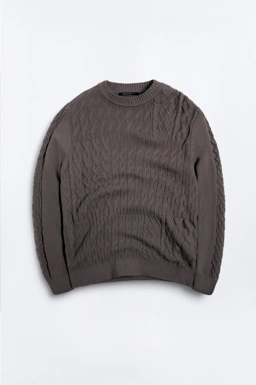 - Lengan panjang dengan aksen cable knit di sisi luar