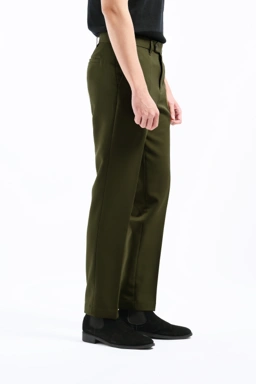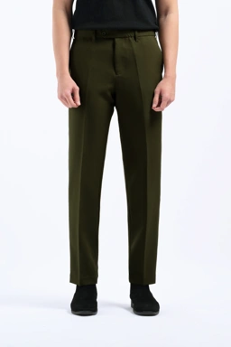 - Dua saku bibir belakang dengan kancing lipatan bawah celana