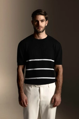 - Kaos Rajut dengan motif garis yang memberi tampilan kasual dan dapat digunakan sehari-hari