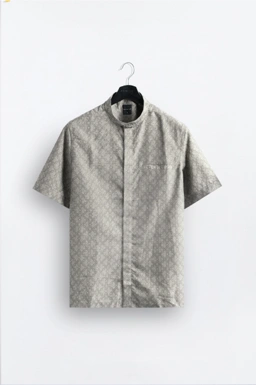 - Kemeja kerah Tegak/Sudut dengan material bertekstur dengan detail print