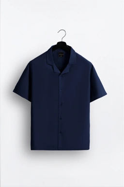 - Kemeja dengan kerah terbuka dengan ukuran relaxed fit