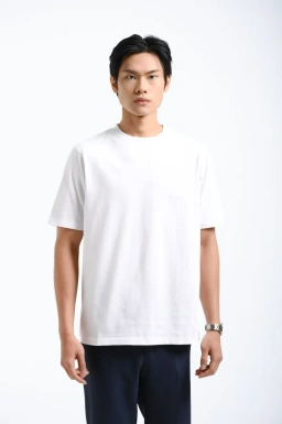 - Kaos berbahan katun dengan potongan regular