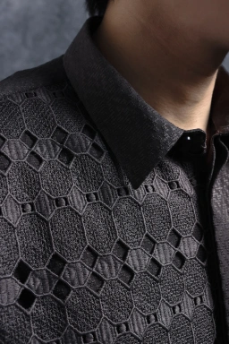 Kemeja ini dirancang dengan potongan Reguler Formal yang memberikan siluet rapi dan profesional. Kemeja ini memberikan sisi tegas melalui desain Asimetris yang dilapisi Brokat dengan sentuhan modern yang unik. Penggunaan Hidden Button memastikan tampilan depan menjadi clean dan minimalis, sementara detail Saku Bobok di dada kiri dan Lengan Pendek memperkuat karakter eksklusifnya. Kemeja ini sangat cocok untuk acara formal, perhelatan mewah, maupun momen spesial penting lainnya.