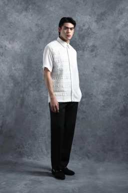 Kemeja ini dirancang dengan potongan Reguler Formal yang memberikan siluet rapi dan profesional. Kemeja ini memberikan sisi tegas melalui desain Asimetris yang dilapisi Brokat dengan sentuhan modern yang unik. Penggunaan Hidden Button memastikan tampilan depan menjadi clean dan minimalis, sementara detail Saku Bobok di dada kiri dan Lengan Pendek memperkuat karakter eksklusifnya. Kemeja ini sangat cocok untuk acara formal, perhelatan mewah, maupun momen spesial penting lainnya.