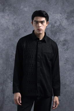 Kemeja ini dirancang dengan potongan Reguler Formal yang memberikan siluet rapi dan profesional. Kemeja ini memberikan sisi tegas melalui desain Asimetris yang dilapisi Brokat dengan sentuhan modern yang unik. Penggunaan Hidden Button memastikan tampilan depan menjadi clean dan minimalis, sementara detail Saku Bobok di dada kiri dan Lengan Panjang dengan Manset Berkancing memperkuat karakter eksklusifnya. Kemeja ini sangat cocok untuk acara formal, perhelatan mewah, maupun momen spesial penting lainnya.