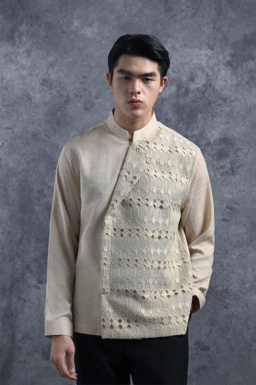 Kemeja ini dirancang dengan potongan Reguler Formal yang memberikan siluet tubuh tegap namun tetap nyaman. Menampilkan sentuhan tegas melalui Panel Depan Asimetris Berbalut Brokat yang memberikan dimensi tekstur mewah dan eksklusif. Penggunaan Kancing tersembunyi menjaga tampilan minimalis, sementara detail kancing pada Panel hadir sebagai aksen dekoratif yang memperkuat karakter desain. Kemeja ini bisa menjadi pilihan untuk berbagai acara istimewa maupun momen formal yang membutuhkan perpaduan antara tradisi dan high-fashion.