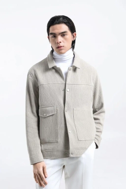 - Jaket multi saku dibuat dengan material texture