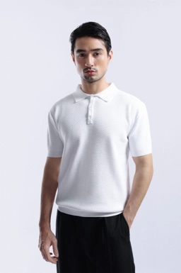 Polo Knit bertekstur ini terbuat dari bahan super lembut yang nyaman di kulit, meski memiliki tekstur unik. Detail kerah polo bersudut dan bukaan kancing di bagian depan menambah kesan klasik, sementara lengan pendek dengan rib elastis memberikan fit yang rapi tanpa mengurangi kenyamanan. Bagian bawah dilengkapi rib rajut elastis dengan potongan slim fit, menciptakan siluet clean yang mudah dipadukan dengan berbagai gaya kasual maupun semi-formal. Polo knit ini adalah pilihan tepat untuk tampilan simpel namun tetap sophisticated.