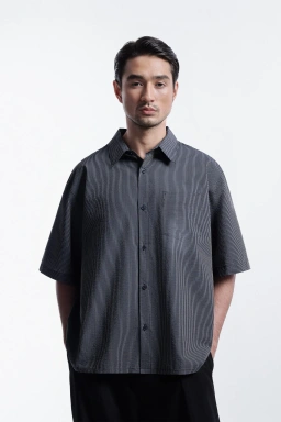 Dilengkapi bagian lengan pendek dengan potongan bawah lurus membuat kemeja ini mudah dipadukan dengan celana formal maupun kasual, menjadikannya pilihan ideal untuk tampilan modern, minimalis, dan effortless.