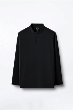 - Detail Kancing Henley 3-Button: Aksen khas yang menambah karakter tanpa berlebihan.