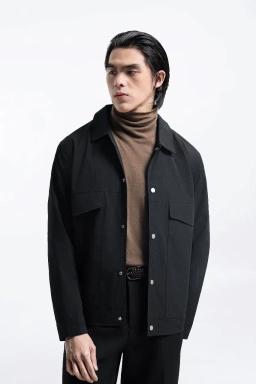 - Jaket multi saku dibuat dengan material tekstur seersucker