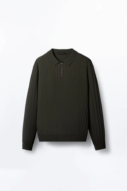 - Kemeja polo rajut bertekstur regular fit dengan bukaan zipper berbahan polyester nylon
