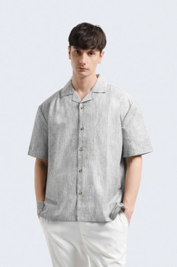 - Kemeja dengan motif bergaris dengan ukuran relaxed fit