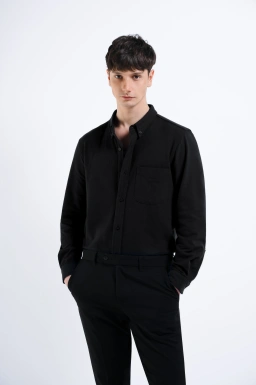- Kemeja lengan panjang dengan material Katun poliester dengan fitting modern fit