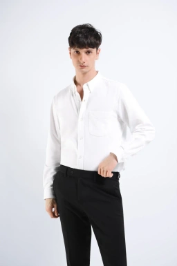 - Kemeja lengan panjang dengan material Katun poliester dengan fitting modern fit