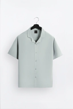 - Kemeja dengan kerah terbuka dengan ukuran relaxed fit