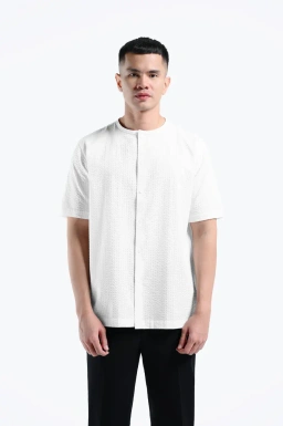 Lyth Seersucker Collarless Short Sleeve Shirt