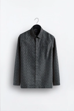 - Kemeja kerah Tegak/Sudut dengan material bertekstur dengan detail print