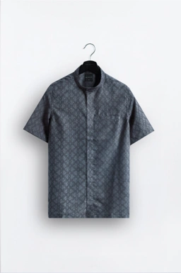 - Kemeja kerah Tegak/Sudut dengan material bertekstur dengan detail print
