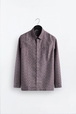 - Kemeja kerah Tegak/Sudut dengan material bertekstur dengan detail print