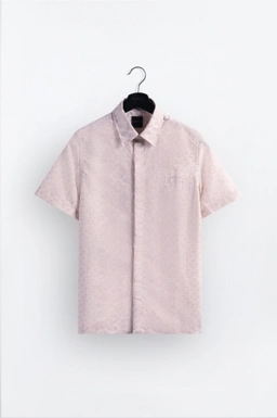 - Kemeja kerah Tegak/Sudut dengan material bertekstur dengan detail print