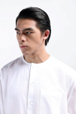 - Kemeja dengan detail tanpa kerah yang dapat digunakan di hari raya dan menambahkan penampilan gaya sehari-hari yang casual daily activity.