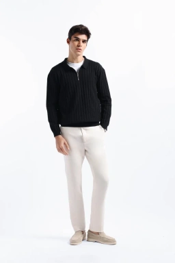 - Bukaan kemeja polo rajut dengan bukaan zipper metal